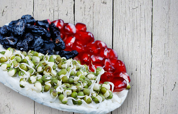 Sprouted green grams, black grapes & pomegranate